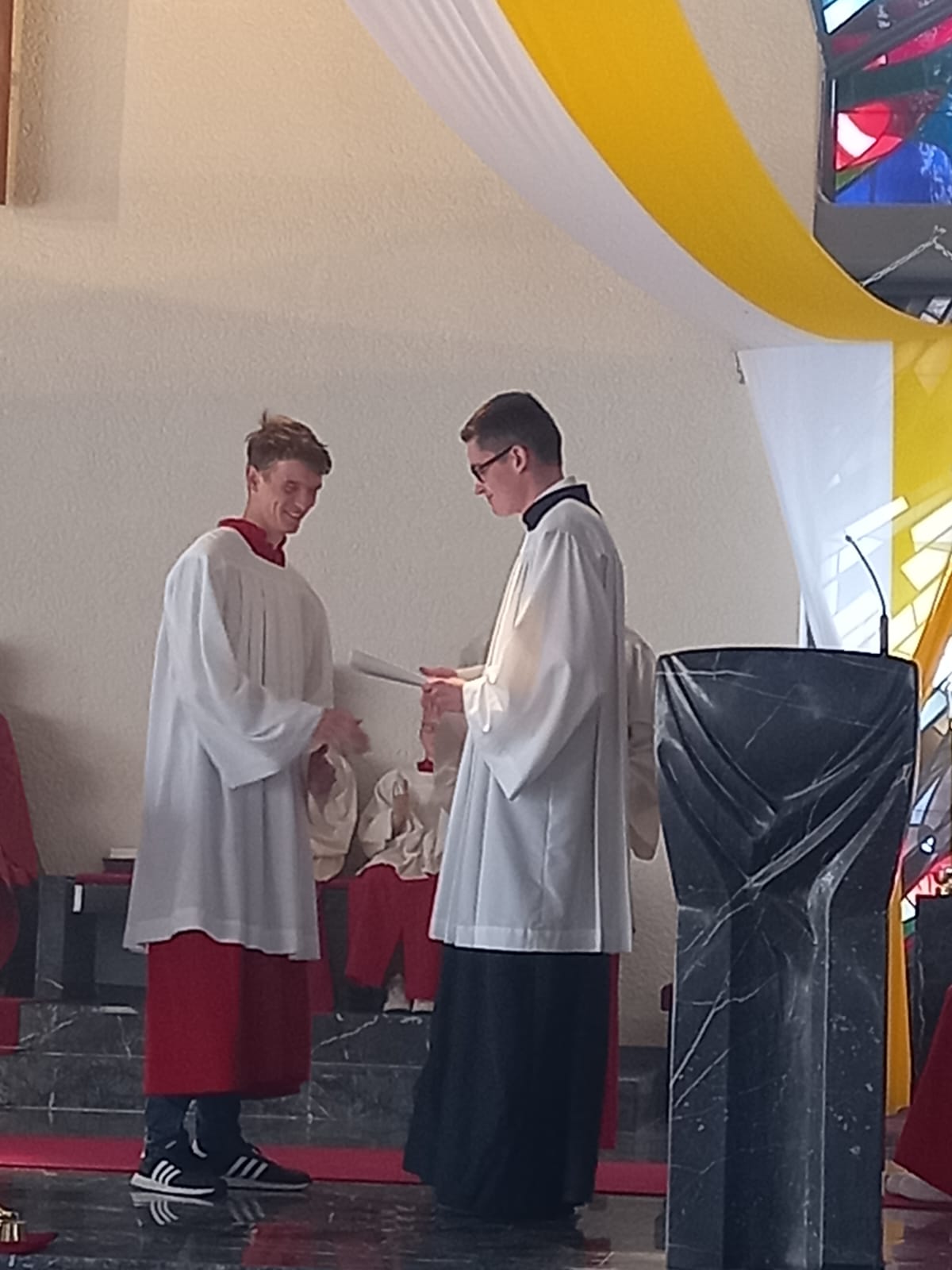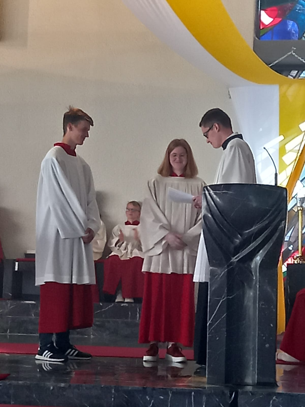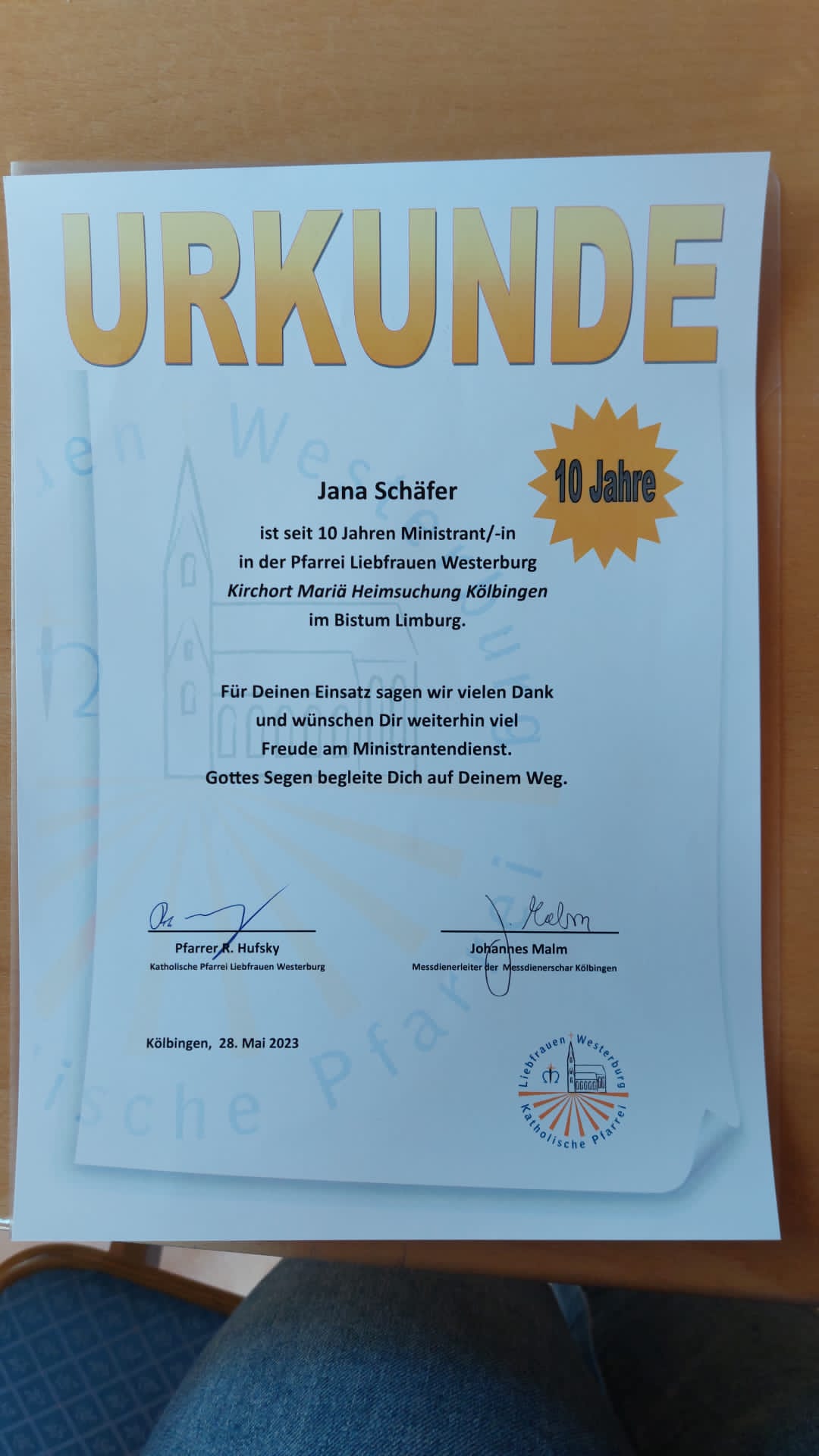 Am Ende des Gottesdientes erhielten beide dafür von unserem Messdienerleiter eine Urkunde und vom