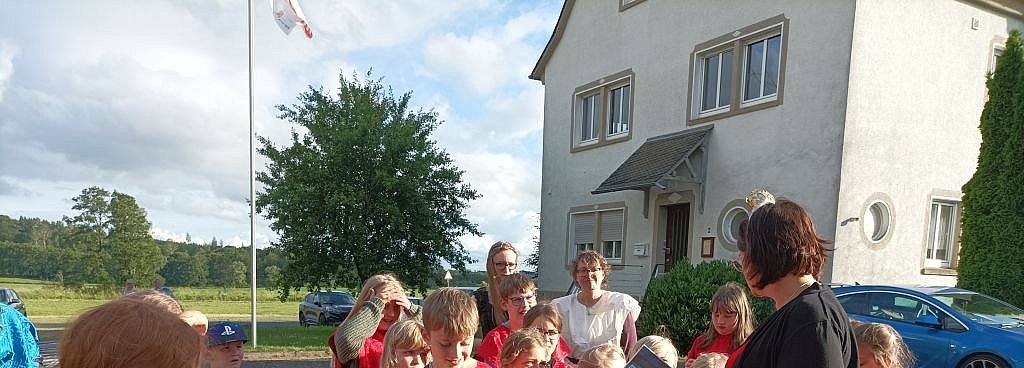Einmal ein Abenteuer im fantastischen Mittelalter erleben – dieser Traum erfüllte sich für 25 Kinder beim Lesesommerauftakt der KÖB Kölbingen. Die Umgebung der Bücherei in Kölbingen verwandelte sich für drei Stunden in ein Trainingslager für junge Abenteurer*innen, die an der Seite der Fürstin Johannette einen Drachen aus den Fängen der bösen Königin befreiten.